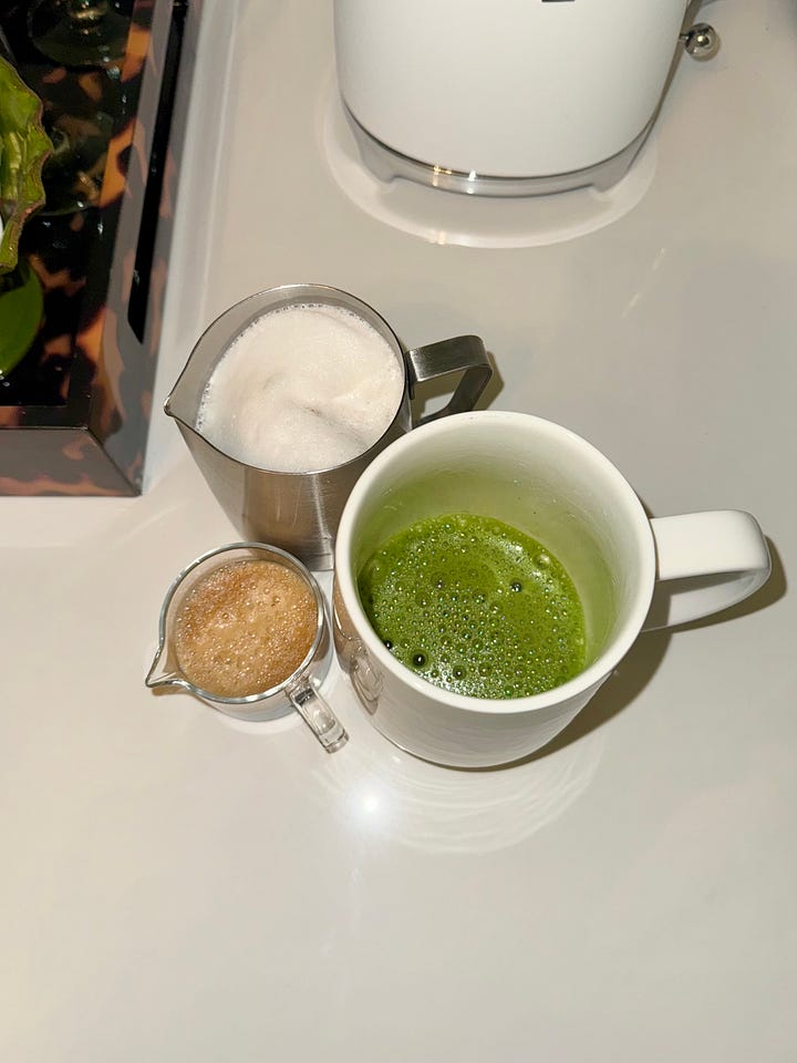 Fast forward through thousands of stomachaches and a few minor panic attacks, and I’ve finally landed on what works for my body: a dirty matcha latte.